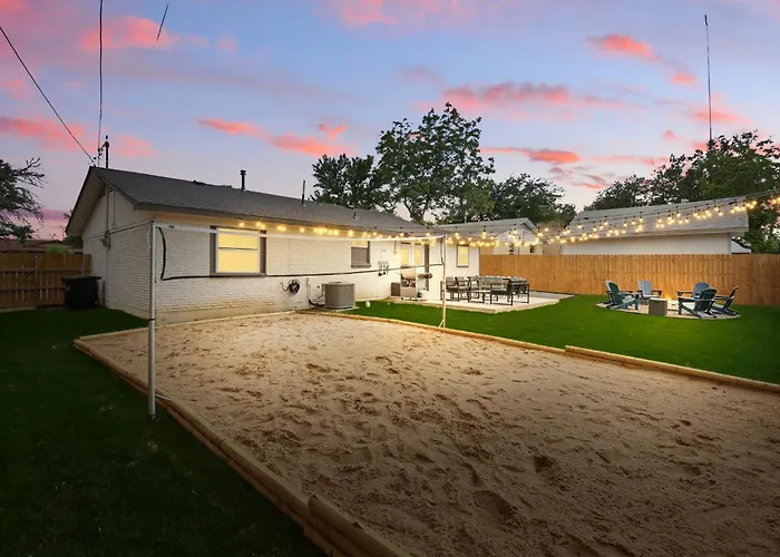 The nearest airport is Dallas-Fort Worth International and it is placed within 15 minutes' drive from Modern Open-Concept 4-Bd 3-Ba With Backyard Villa.
